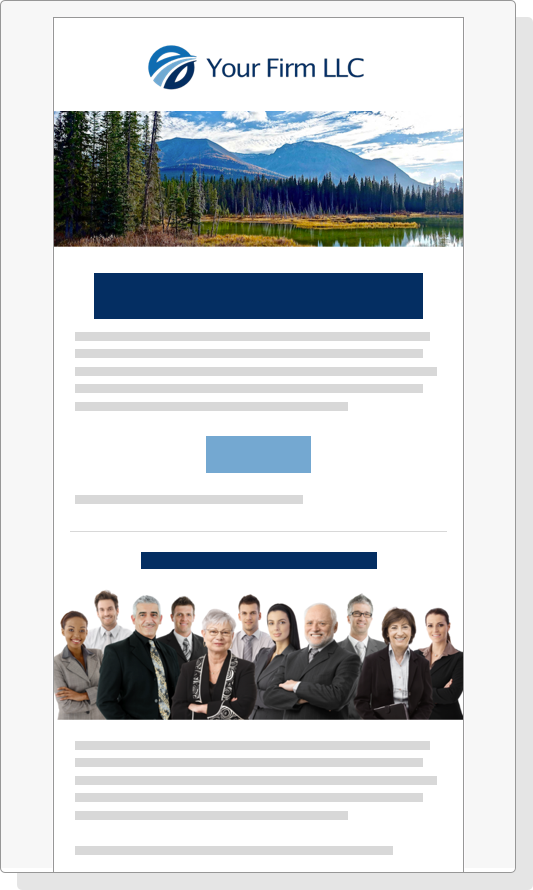 Our email templates are beautifully designed, specific to your firm’s brand. Each email is strategically designed for maximum engagement by showcasing just one topic with an obvious call to action. Our emails receive two to three times the engagement of typical emails.